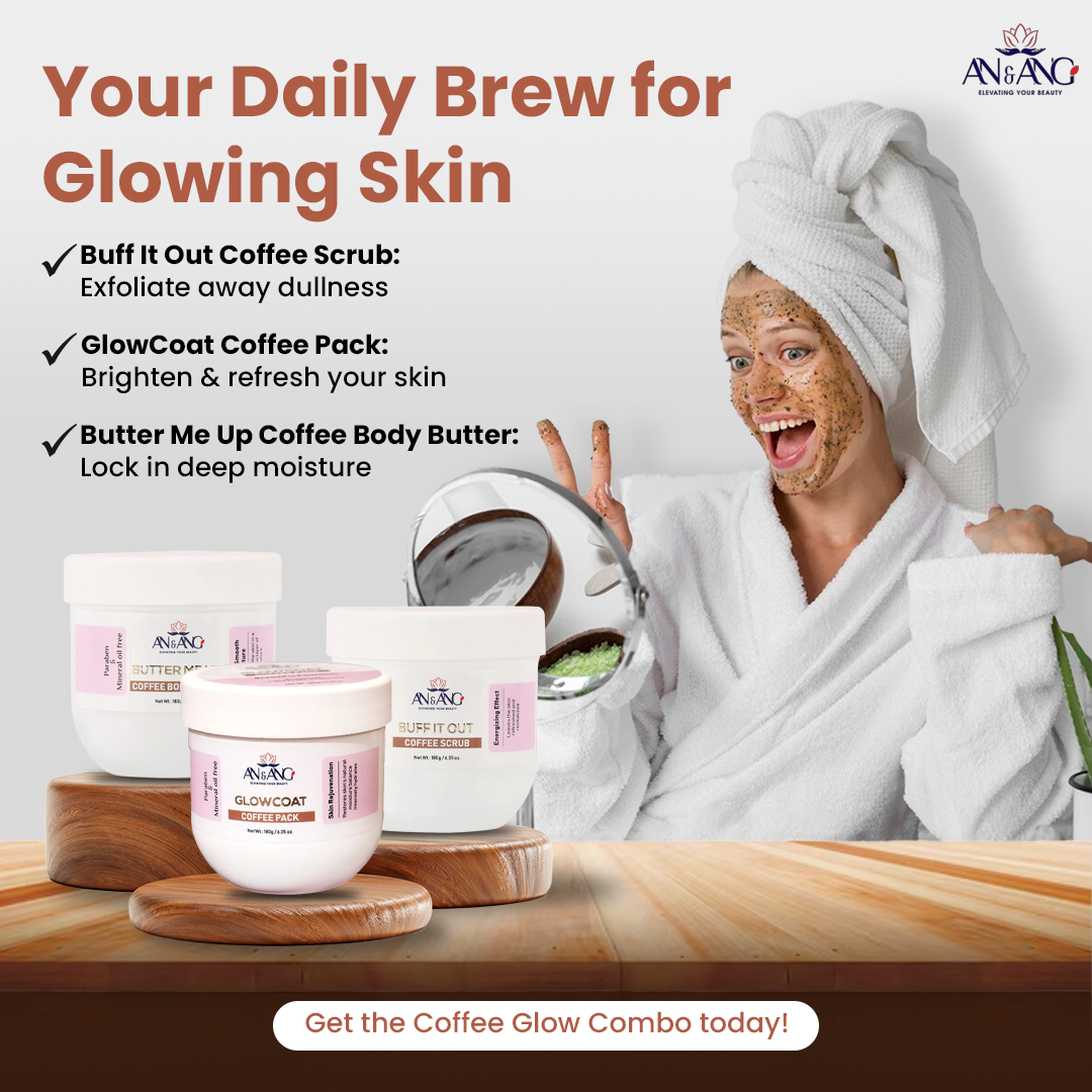 Energize and rejuvenate your skin with our Coffee Range Regime, a powerful 3-step routine enriched with Coffee, Cocoa Butter, and nourishing botanical extracts. Designed to exfoliate, detoxify, and deeply hydrate, this routine helps reduce tan, smooth skin texture, and leave you with a healthy, radiant glow.